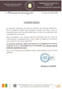 Dans le communiqué , la direction réitère son engagement à œuvrer pour la résolution des difficultés qui assaillent ces boursiers guinéens qui ne cessent de se plaindre de leurs conditions de vie et d’étude à l’étranger.