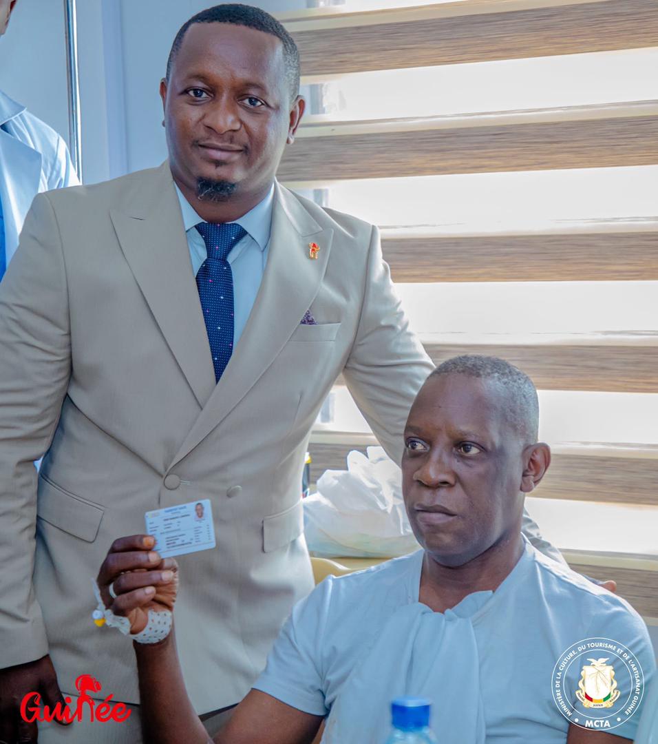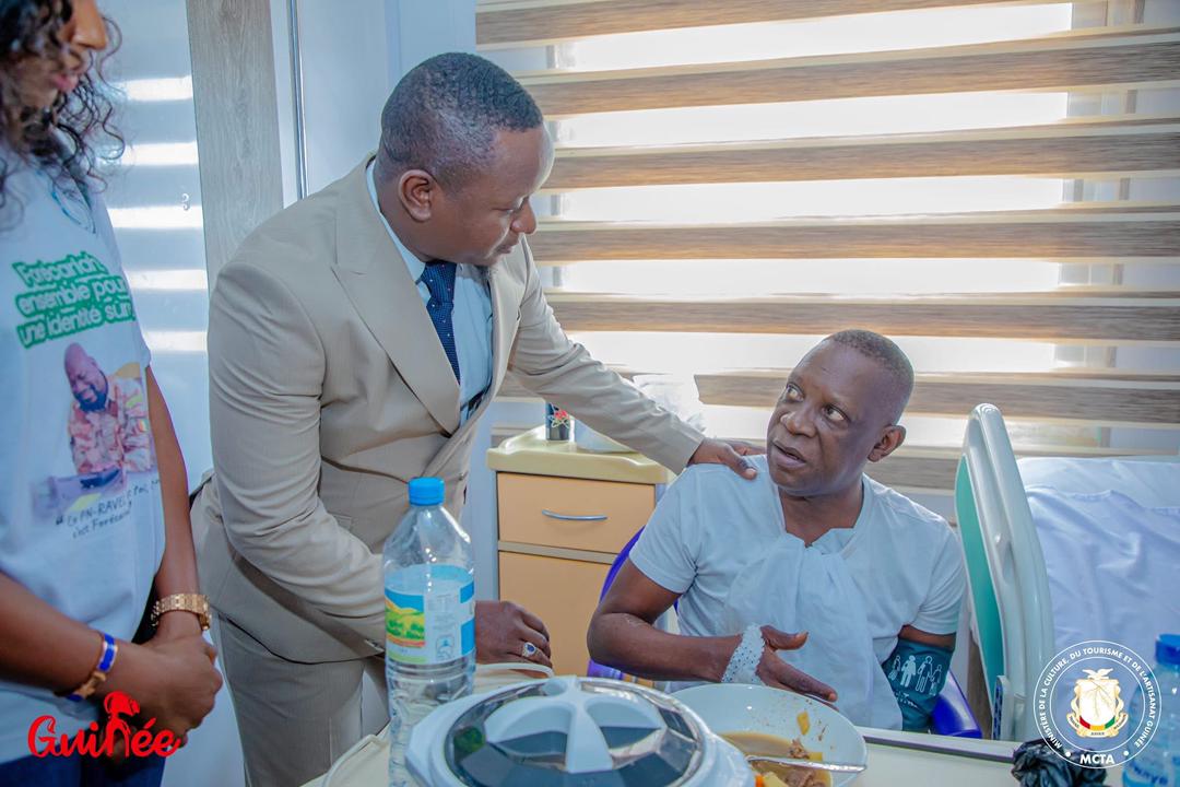 Ce malheur qui a frappé ce musicien célèbre, provoque une onde d’émotion et de soutien chez des mélomanes mais aussi des autorités en charge de la culture. C’est le cas du Ministre de la culture qui s’est rendu ce jeudi au chevet de Lamah Sidibé, hospitalisé dans une clinique privée de Conakry. Moussa Moise sylla accompagné de certains artistes, était porteur d’un message du Président de la transition qui selon lui, se dit soucieux de ce qui est arrivé à l’auteur du titre « Djomba ».