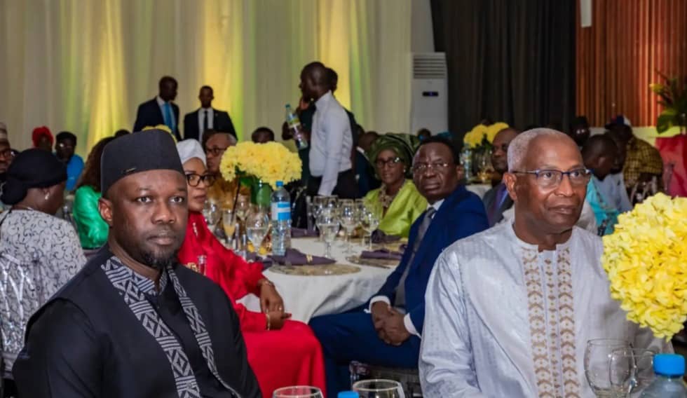 Ousmane Sonko, Premier Ministre Sénégalais (gauche) et Amadou Oury Bah, Premier Ministre Guinéen (droite) lors du dinner.