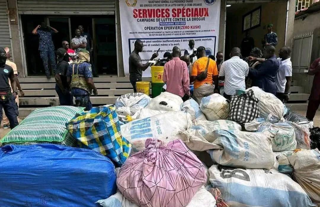 C’est une saisie d’une ampleur inédite que les services spéciaux guinéens ont présentée ce lundi 30 juin 2025 à Conakry. Lors d’une série d’opérations menées à Boulbinet, les forces de sécurité ont mis la main sur 773 kilogrammes de chanvre indien et 16,53 kilogrammes de drogue Kush, une substance particulièrement dangereuse, rarement interceptée en si grande quantité sur le territoire national. 17 personnes, dont 8 femmes, ont été arrêtées.