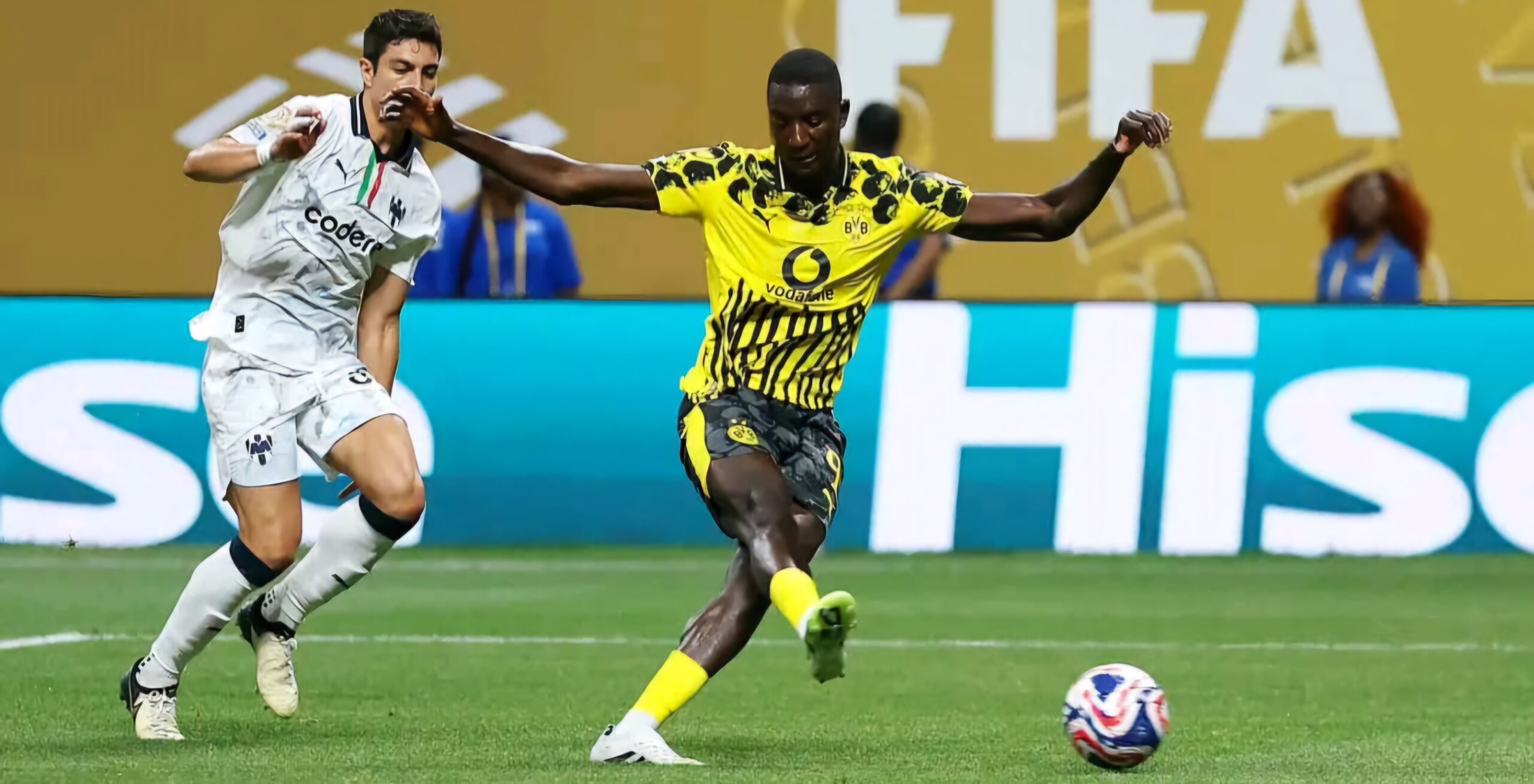 Le Borussia Dortmund s’est qualifié pour les quarts de finale de la Coupe du monde des clubs en s’imposant (2-1) face aux Mexicains de Monterrey. Dès l’entame du match, les Allemands ont imposé un rythme élevé, mettant rapidement leur adversaire sous pression. Serhou Guirassy a ouvert le score à la 14ème minute sur une passe de Karim Adeyemi, avant de doubler la mise 10 minutes plus tard, toujours servi par le même coéquipier.