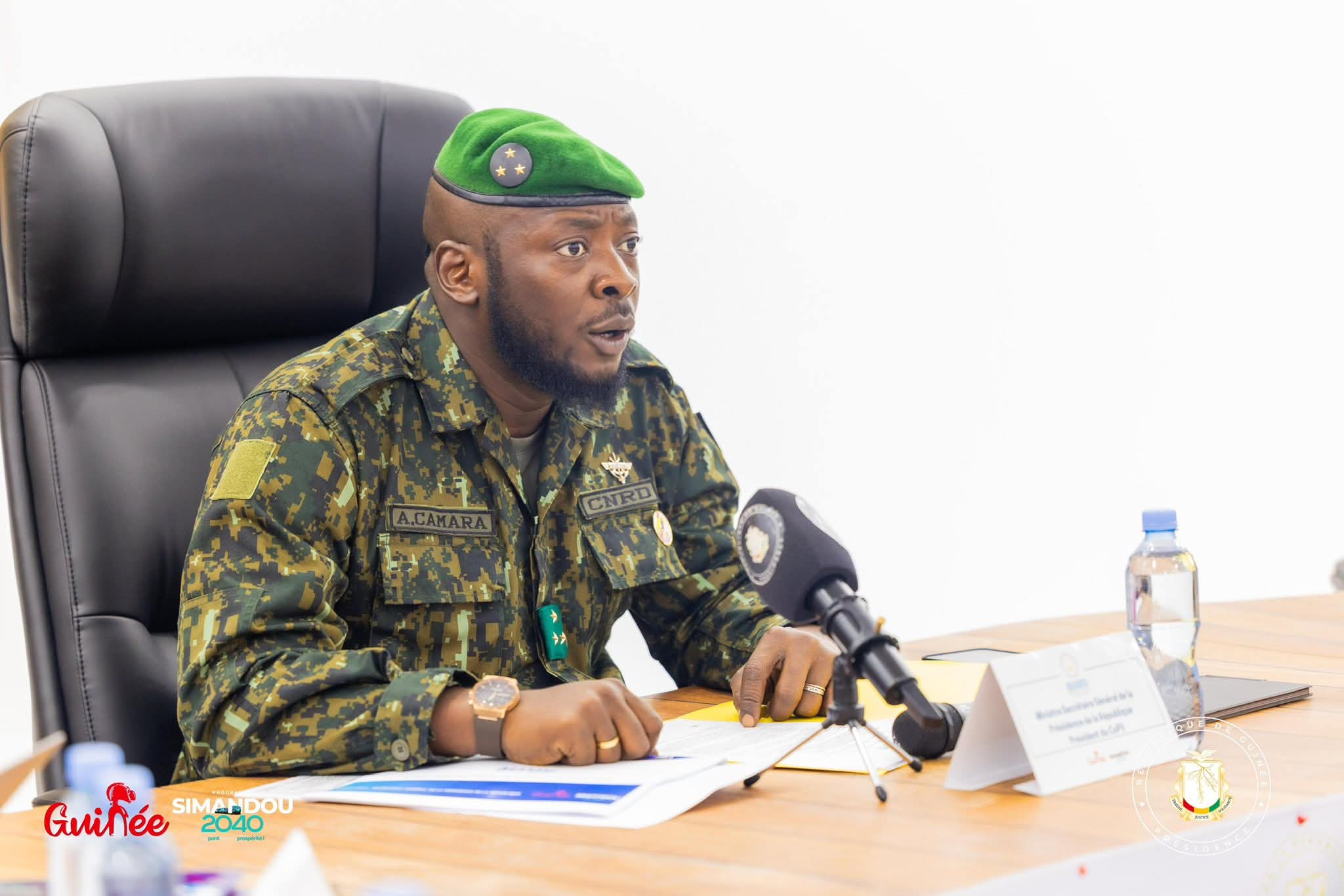 Général Amara Camara, Secrétaire général de la Présidence de la République présidant la réunion du comité de pilotage de la mission d’appui à la mobilisation des ressources internes (MAMRI).