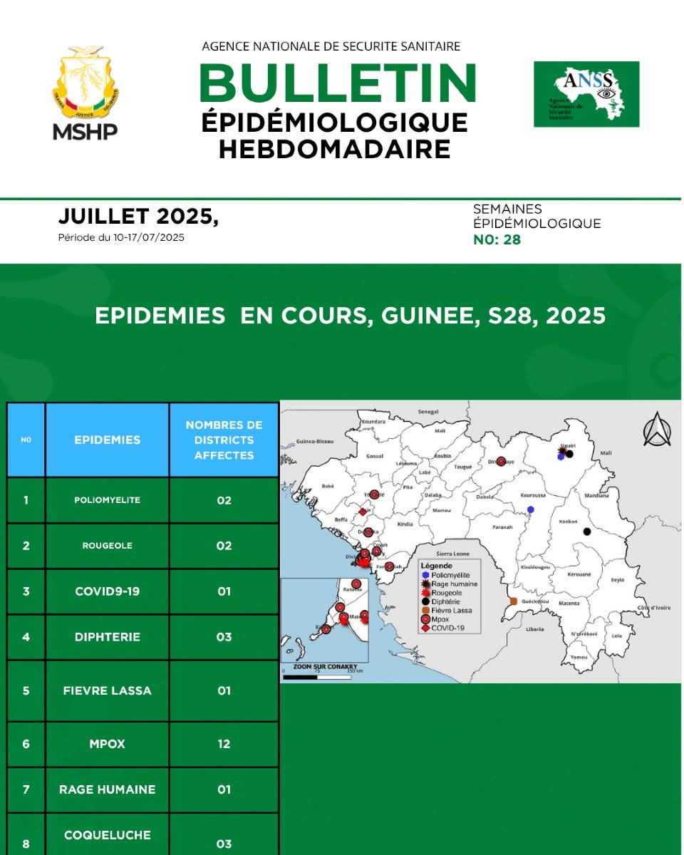 La Guinée fait face à une progression alarmante de l’épidémie de Mpox, avec 12 districts sanitaires touchés à la date du 16 juillet 2025, selon l’Agence Nationale de Sécurité Sanitaire (ANSS).