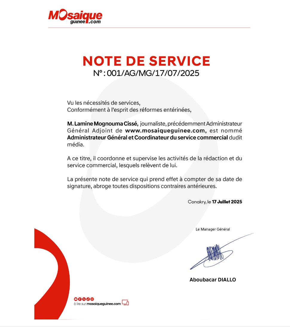 Médias : Lamine Mognouma Cissé nommé Administrateur général et coordinateur du service commercial de Mosaiqueguinée