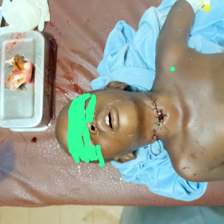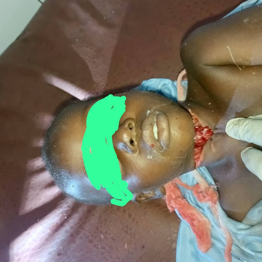 L’enfant, Sékou Keita, présentait une section complète de la trachée, empêchant toute respiration normale: « Il n’y avait plus d’air par le nez ni par la bouche », raconte Dr ABC. Face à l’urgence et sans matériel spécialisé, l’équipe médicale a pratiqué une ouverture directe à la gorge, permettant à l’air de circuler par la trachée exposée.