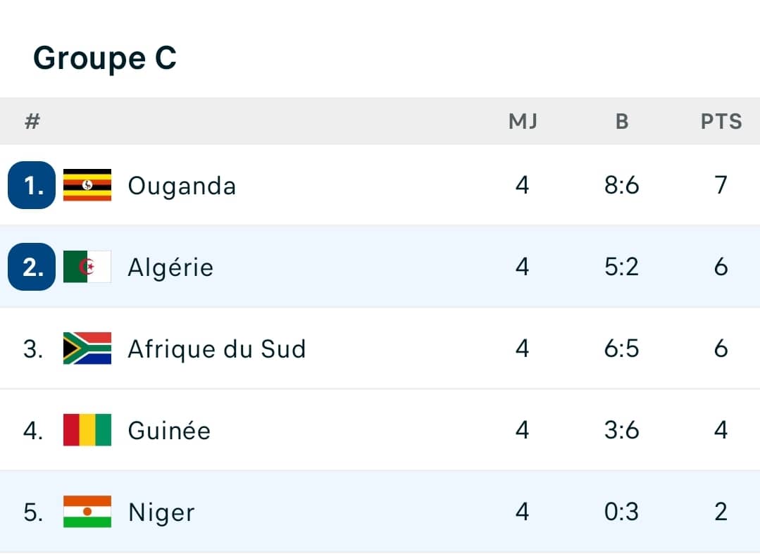 Le groupe C du Championnat d’Afrique des Nations a livré son verdict ce lundi soir. Après quatre journées intenses, ce sont l’Ouganda et l’Algérie qui décrochent les deux tickets qualificatifs pour le tour suivant, laissant derrière l’Afrique du Sud, la Guinée et le Niger.