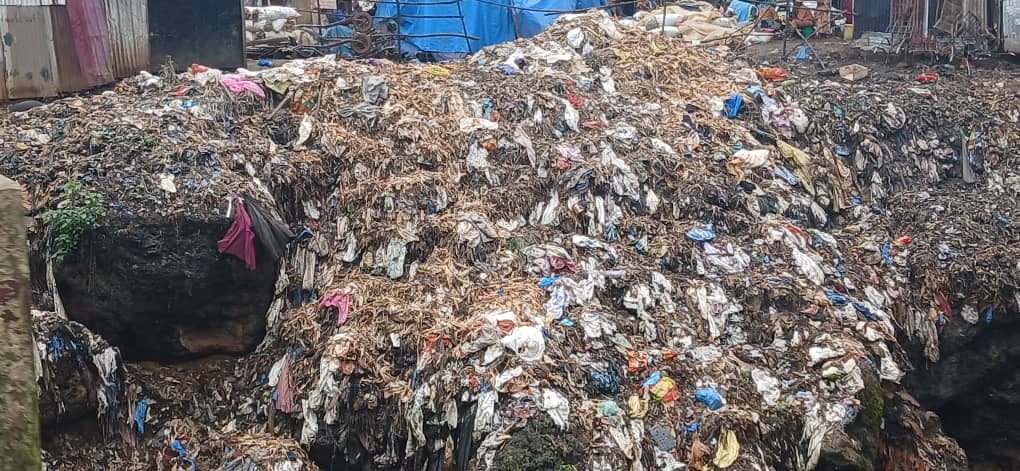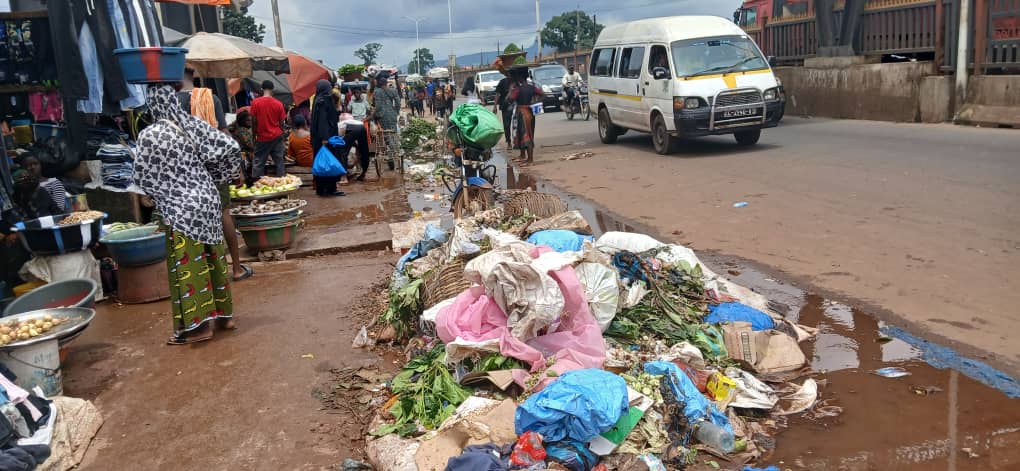 À certains endroits, les déchets débordent littéralement sur la chaussée, réduisant la circulation à une seule voie. Cette route nationale, pourtant très fréquentée, est désormais jonchée de détritus de tout genre : sacs plastiques, restes alimentaires, débris ménagers. L’amoncellement, aggravé par la boue et les eaux stagnantes dues aux pluies, provoque d’importants embouteillages. Les odeurs pestilentielles mêlées aux gaz d’échappement rendent l’atmosphère difficilement supportable.