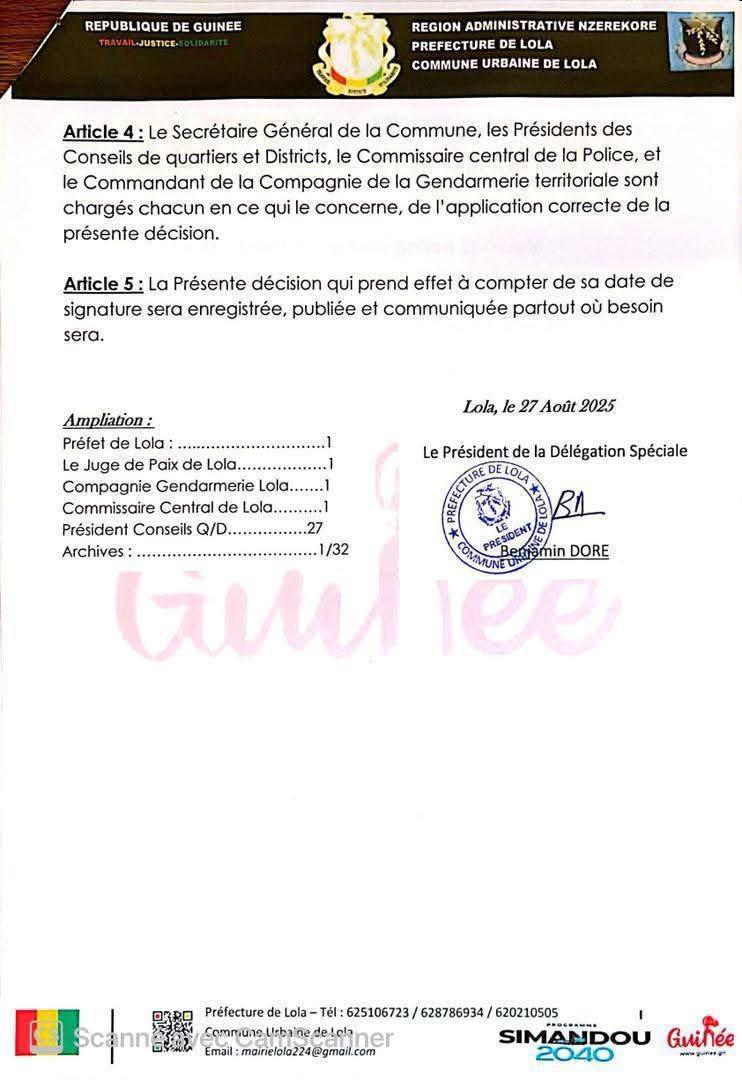 Dans une note circulaire publiée ce mercredi 27 août 2025, le président de la délégation spéciale de Lola, Benjamin Doré, a annoncé l’interdiction formelle de l’organisation et de la pratique de cette soirée dans sa commune.