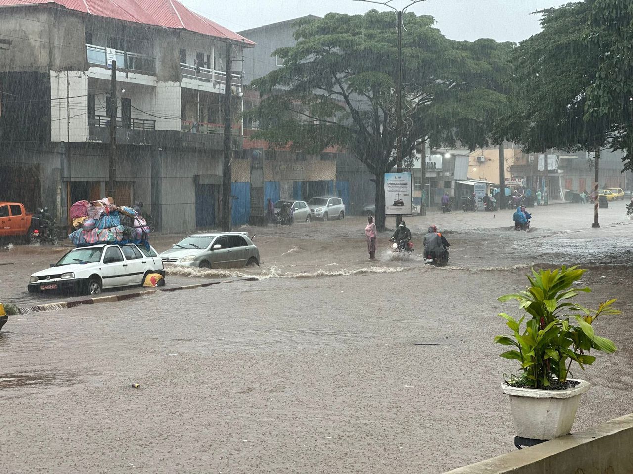 Se déplacer à Conakry relève presque de l’exploit. À Camayenne, l’accès est devenu particulièrement difficile. Même scénario à Taouyah, dans la commune de Ratoma, où la corniche reliant la Minière à Belle-Vue était méconnaissable : chaussée submergée, circulation totalement bloquée, voitures et motos immobilisées.