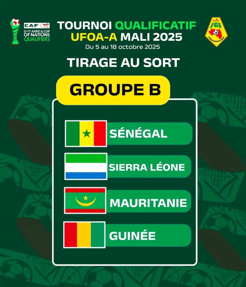 Cette phase qualificative de la Zone UFOA-A se déroulera au Mali, du 5 au 18 octobre 2025. Un rendez-vous crucial pour le Syli Cadet qui tentera de décrocher son ticket pour la prochaine CAN U17.