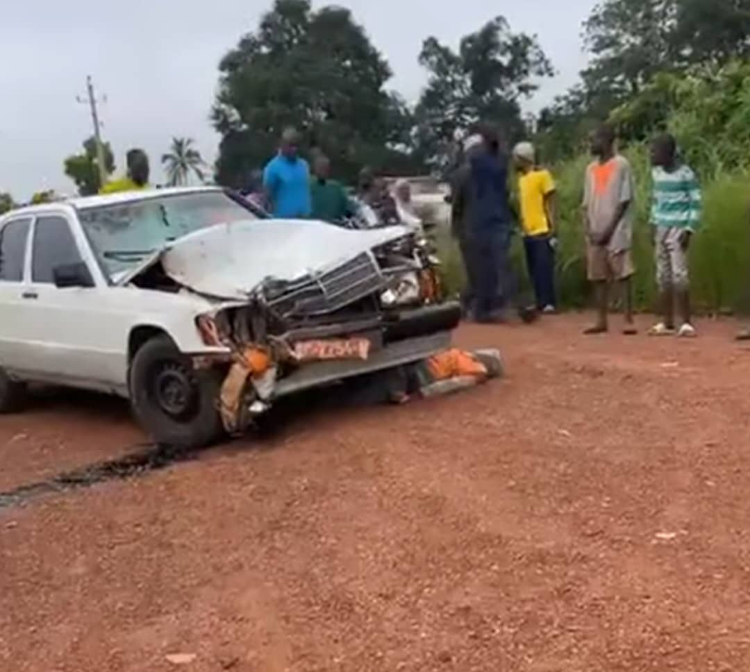 Selon les informations recueillies auprès d’un témoin, Oumar Djouldé Sow, l’accident a impliqué une voiture de marque Mercedes, de couleur blanche et immatriculée sous une plaque rouge dont les chiffres n’ont pas pu être clairement identifiés. Le véhicule est entré en collision avec une moto.