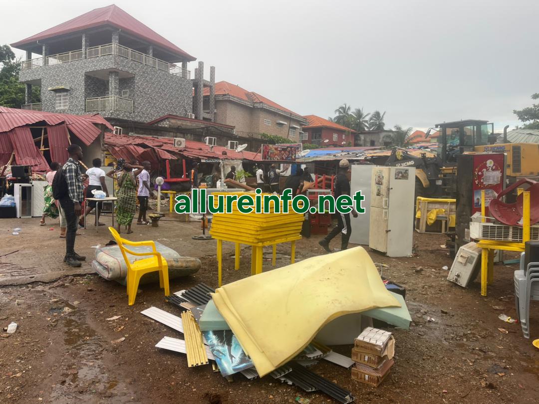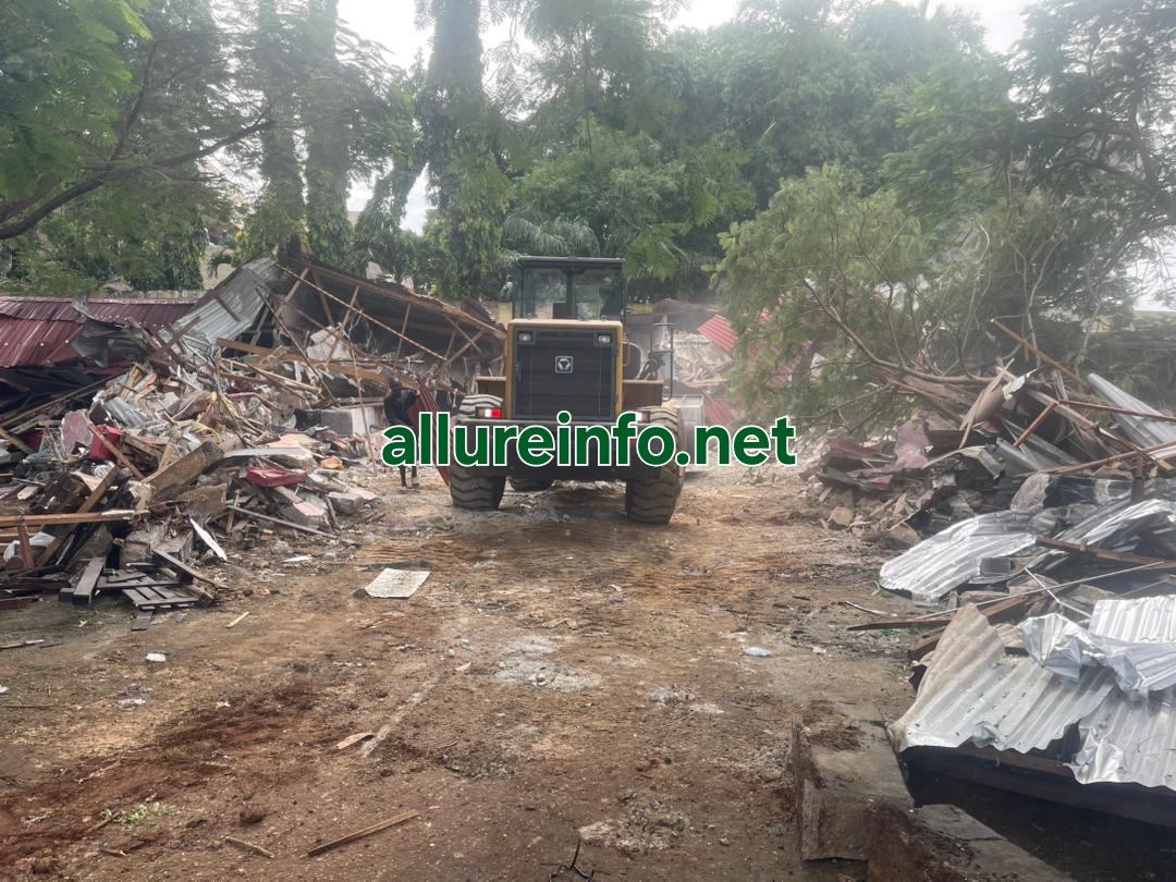 Dès les premières heures de la journée, une machine lourde a été mise en action pour démolir l’ensemble des constructions érigées sur cette superficie. L’opération s’est déroulée sous la supervision d’Amadou Doumbouya et de son équipe, en présence du maire de la commune de Gbessia ainsi que du chef de quartier.