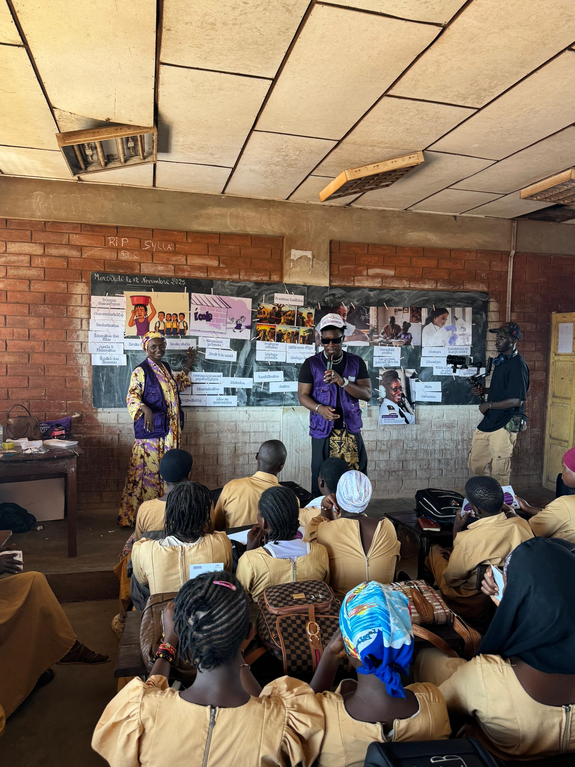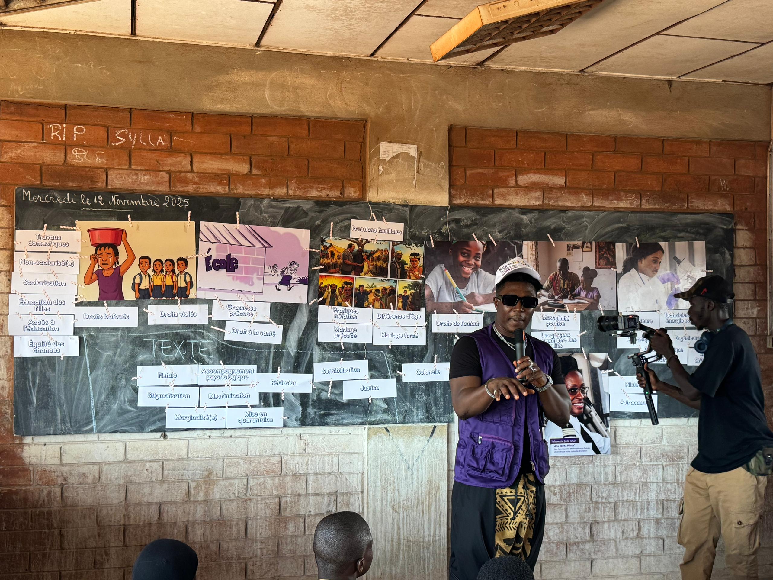 Aux côtés des formateurs, les ambassadeurs Hadja Idrissa Bah et l’artiste Soul Bang’s ont livré un message fort sur l’importance de la scolarisation et du maintien des enfants, particulièrement des filles, à l’école. « Vous devez aller à l’école et apprendre beaucoup pour occuper les places qui vous reviennent dans la construction et le développement de votre pays », ont-ils exhorté les jeunes filles rencontrées.