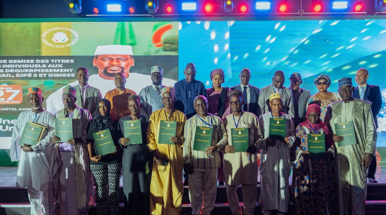 La procédure de régularisation foncière engagée par le gouvernement en faveur des victimes des déguerpissements de Kaporo-Rails, Kipé 2 et Dimesse franchit une nouvelle étape . Comme annoncé lors de la récente conférence de presse du porte-parole du gouvernement, la distribution officielle des titres fonciers a effectivement débuté ce jeudi.