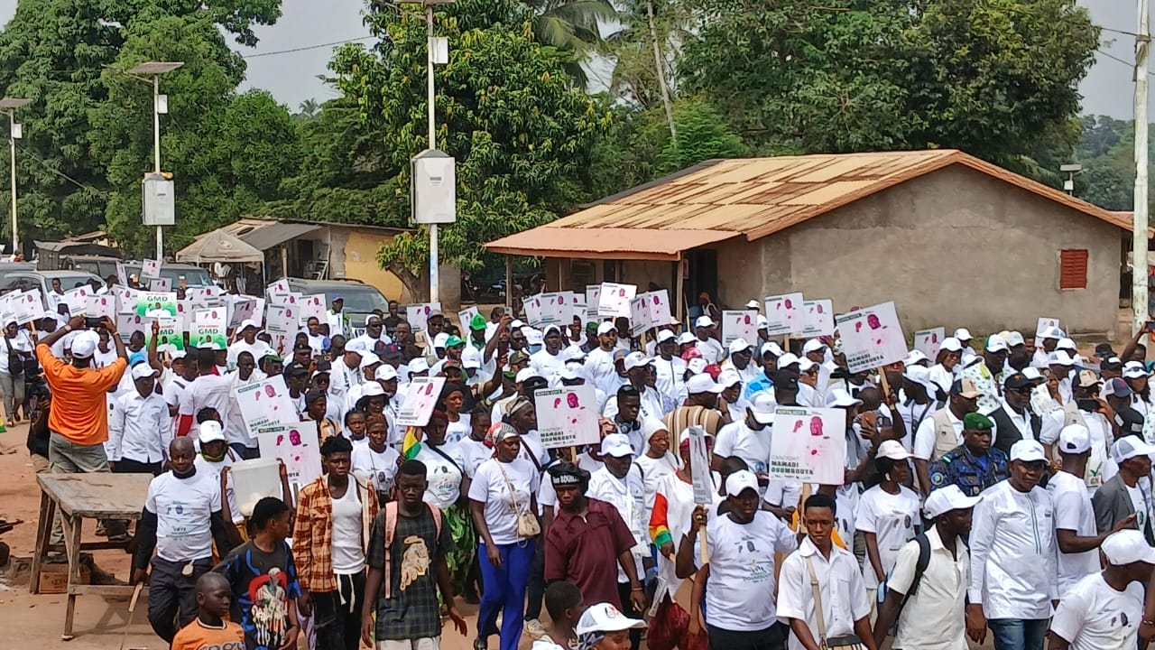 Venus de Tougnifily, Mankountan, Tamita, Kolia, Lisso, Douprou, Koba et Boffa-centre, des milliers de citoyens ont convergé vers le chef-lieu préfectoral pour témoigner leur soutien massif au candidat Mamadi Doumbouya. La cérémonie a débuté par une marche populaire impressionnante, reliant la mairie à la place des Martyrs.