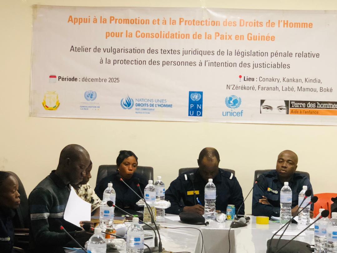 « Cet atelier vise à renforcer les capacités des acteurs de la chaîne pénale magistrats, avocats, forces de défense et de sécurité ainsi que les acteurs de la société civile sur la connaissance réelle des textes juridiques de la législation pénale relatifs à la protection des personnes à l’intention des justiciables. Durant cette session, les participants ont revisité les textes nationaux ainsi que les conventions internationales ratifiées par la Guinée dans le domaine de la protection et de la promotion des droits humains », a-t-il déclaré.
