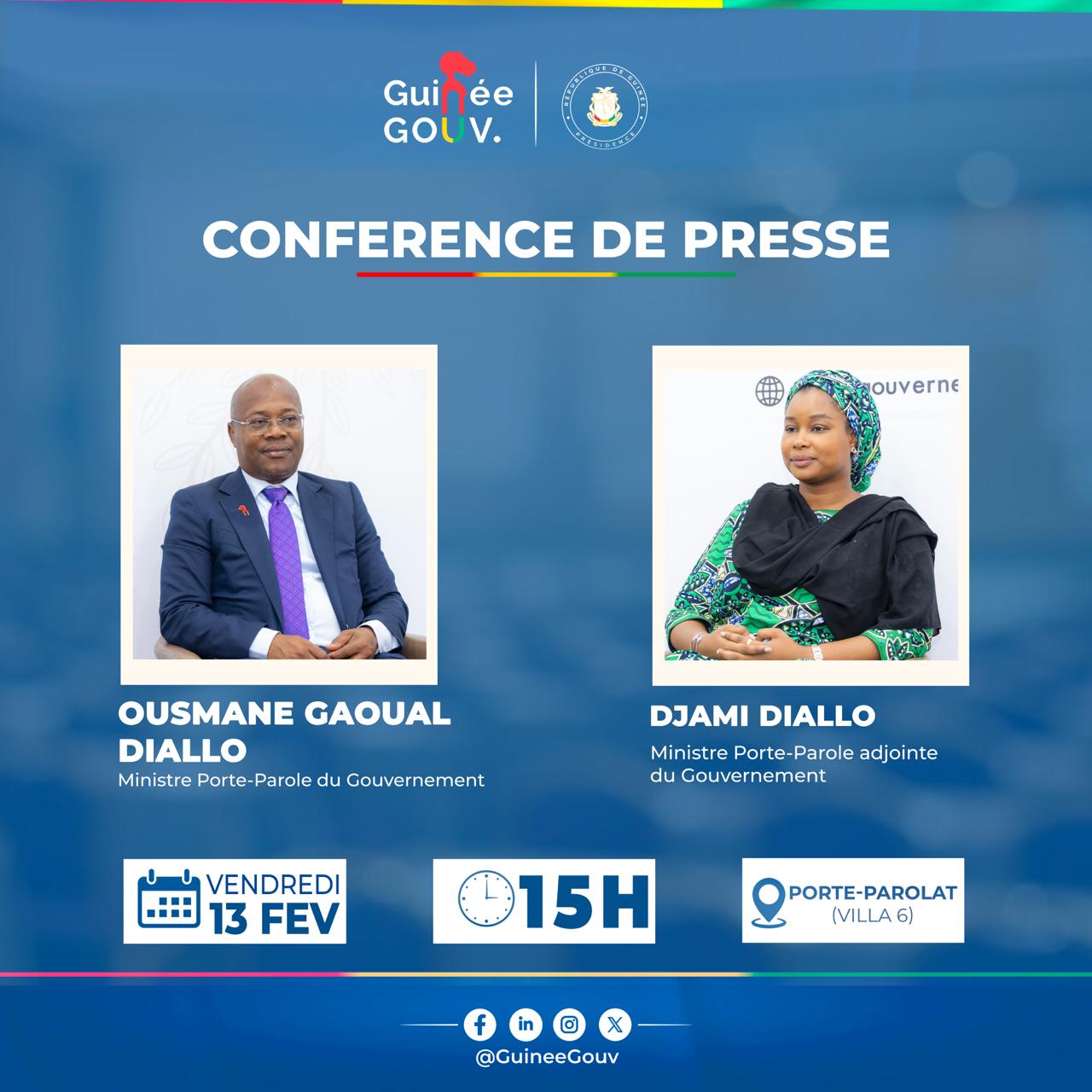 Le ministre porte-parole du gouvernement, Ousmane Gaoual Diallo, sera face aux journalistes à partir de 15 heures, au siège du porte-parolat. Il sera accompagné de sa nouvelle adjointe, également nommée ministre de l’environnement, Djami Diallo.