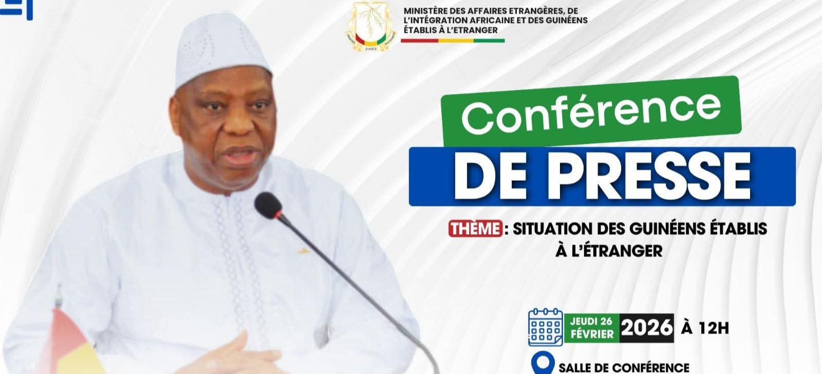 Alors que les médias et les réseaux sociaux s’indignent des opérations d’expulsion visant des ressortissants guinéens en Allemagne, le ministre des Affaires étrangères, Morissanda Kouyaté, annonce une conférence de presse prévue ce jeudi 26 février 2026 à 12 heures.