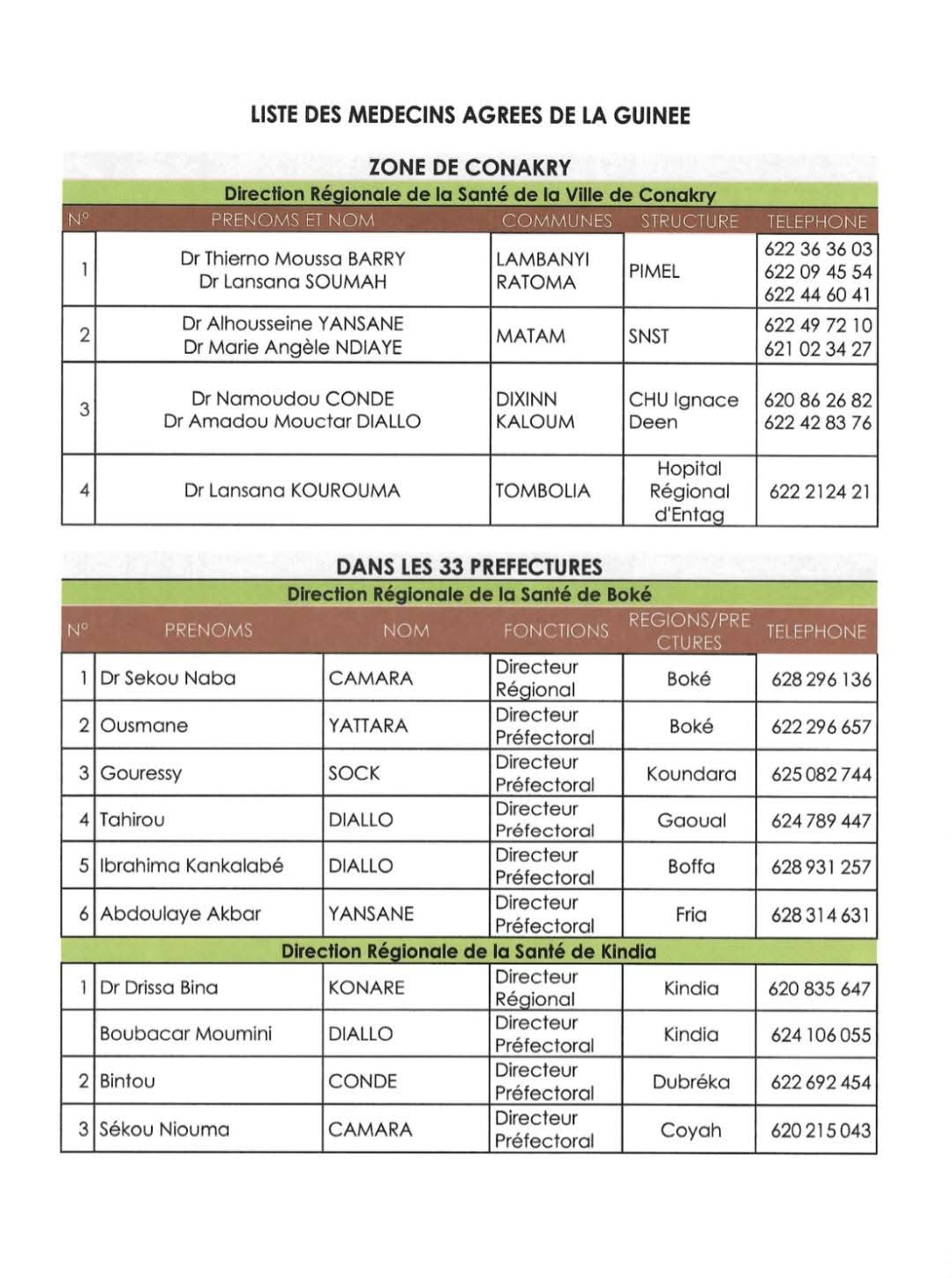 Élaborée en collaboration avec le Conseil national de l’Ordre des médecins, cette sélection couvre Conakry ainsi que les 33 préfectures du pays.