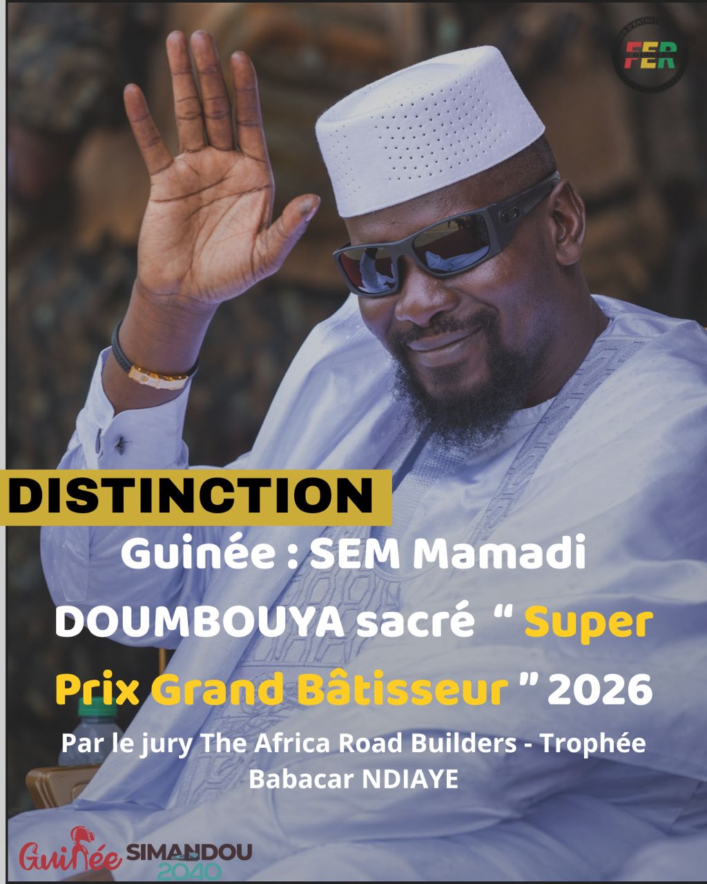 La plateforme africaine de référence en matière de reconnaissance des infrastructures, Africa Road Builders – Trophée Babacar Ndiaye, a désigné Mamadi Doumbouya comme lauréat du Super Prix Grand Builder – Trophée Babacar Ndiaye 2026, en hommage à son leadership et aux investissements majeurs consentis dans le développement des infrastructures routières et des transports.